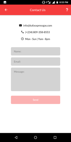 Kafas Xpress Gas Ordering Mobile Application for both Android and iOS allows you to order gas cylinders, gas refills and request other products and services from the comfort of your home on your mobile device and get it delivered to you.